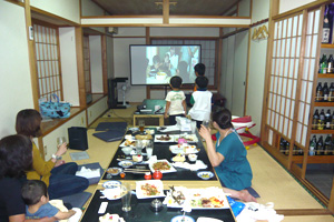 80インチのホームシアター、スポーツ後の反省会や運動会などのビデオ鑑賞、誕生会他ホームビデオ鑑賞、誕生会他ホームビデオ(ハンディカメラ)やDVDをご持参頂ければご使用できます。(要予約)